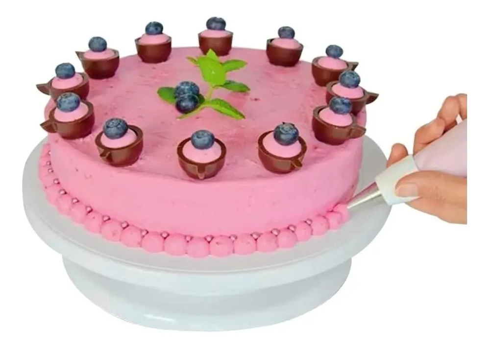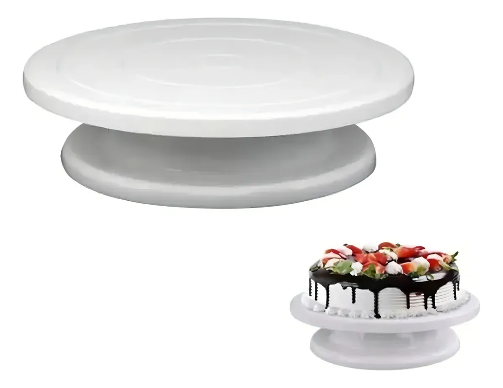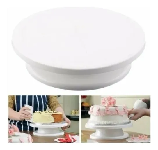 Plato giratorio ideal para decorar tortas, pasteles y cupcakes de forma cómoda y precisa 🧁. Fabricado en plástico resistente y liviano, permite girar la preparación suavemente para lograr un acabado profesional 🎯.