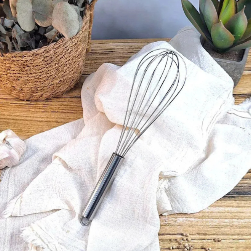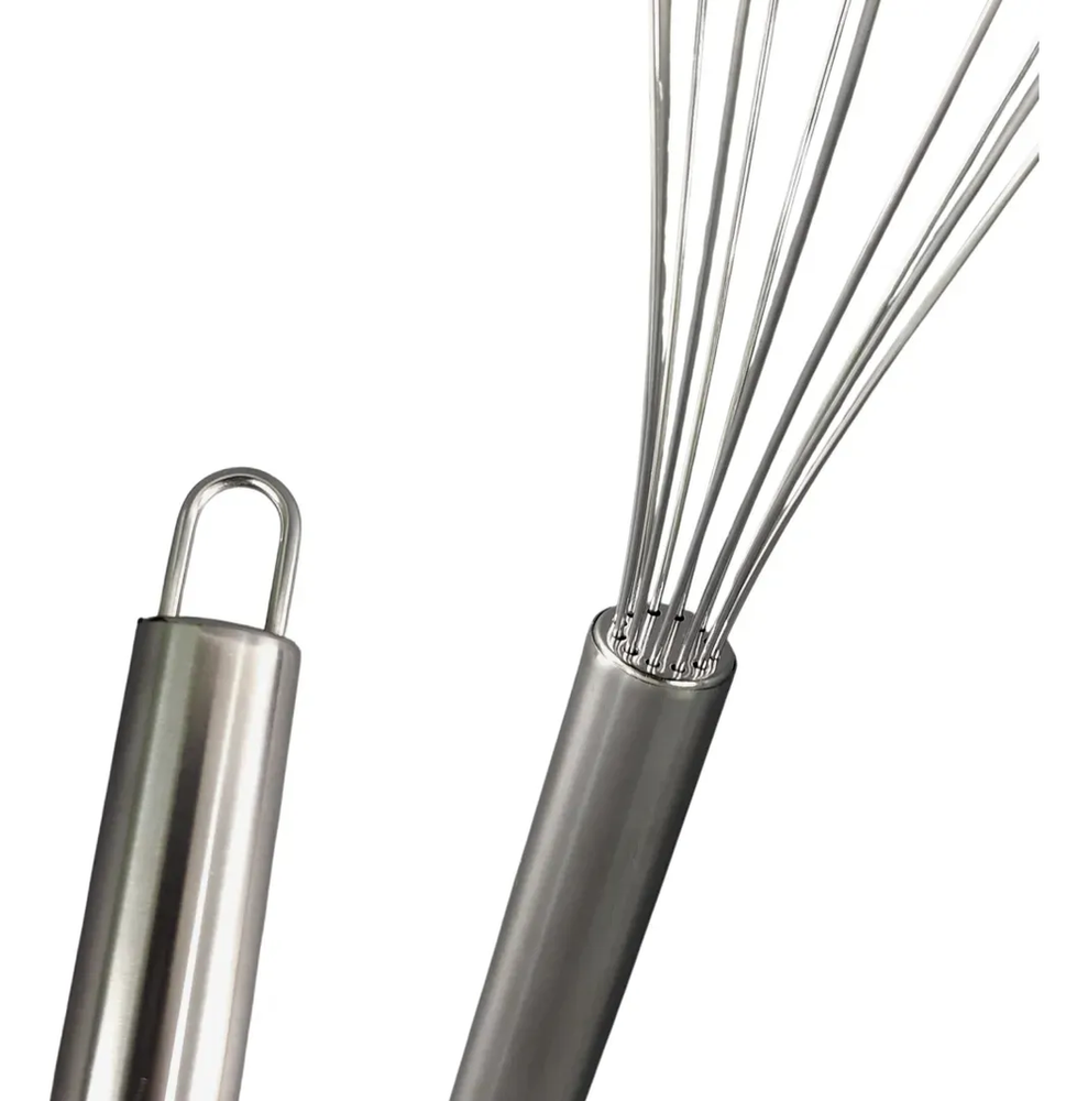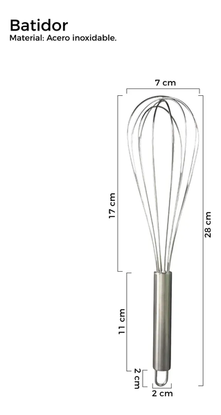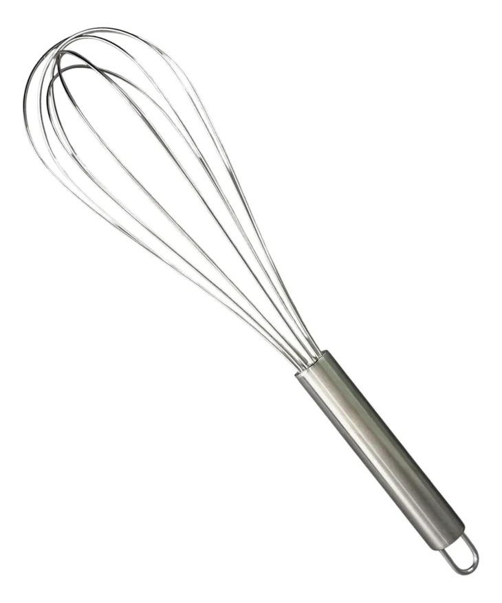 Batidor profesional fabricado en acero inoxidable de alta calidad, ideal para todo tipo de preparaciones en repostería y cocina. Su largo de 30 cm y diseño ergonómico lo hacen cómodo de usar y muy eficiente para batir claras 🥚, mezclar cremas 🍰, masas ligeras y más.