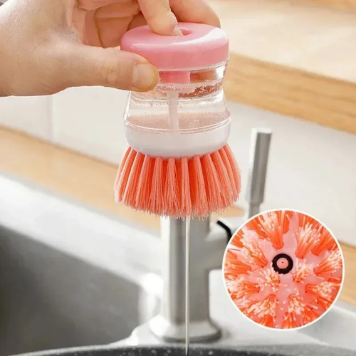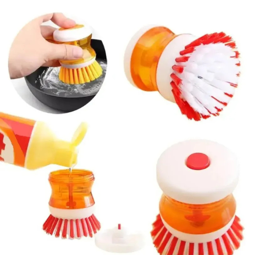 Práctico y funcional, este cepillo es ideal para facilitar la limpieza diaria de platos, ollas y utensilios de cocina 🍽️. Cuenta con un compartimiento para detergente 🧴, que permite dosificar el jabón fácilmente al presionar la parte superior, ahorrando tiempo y producto.
