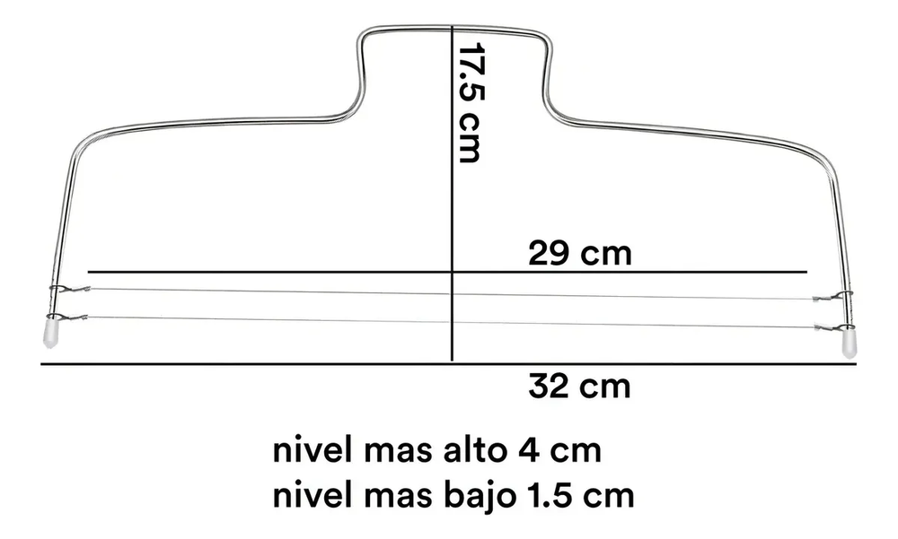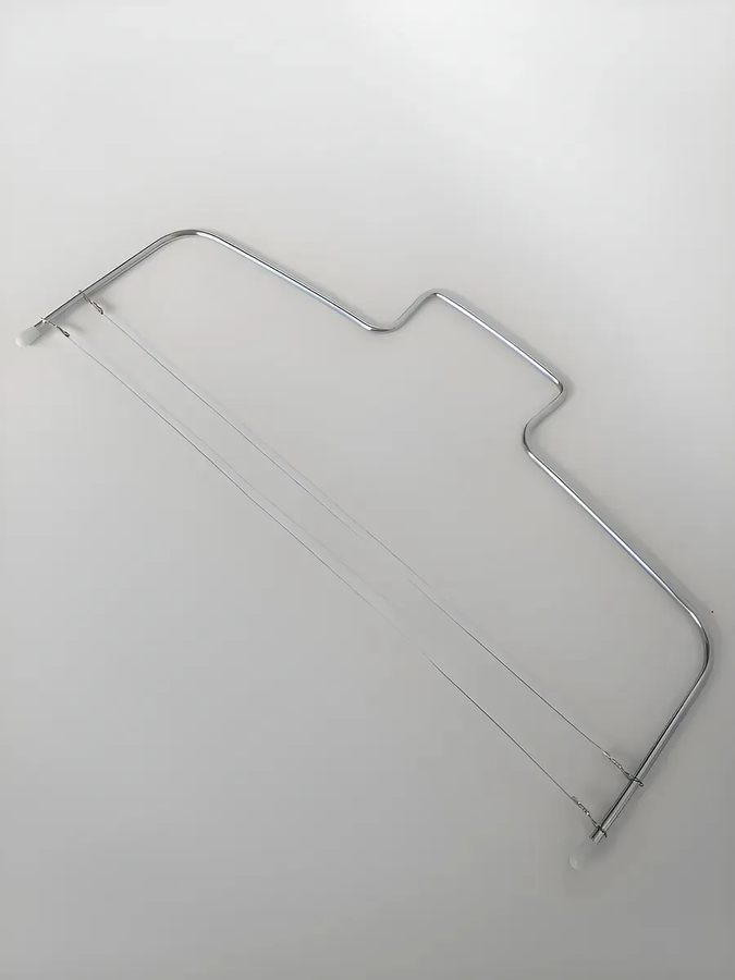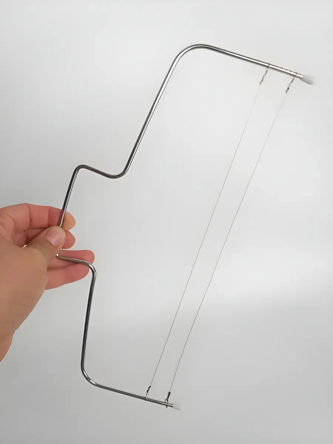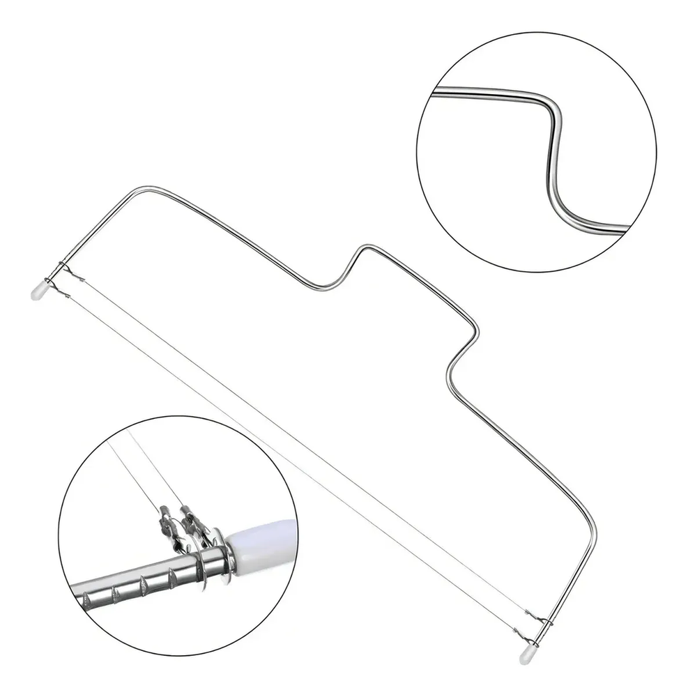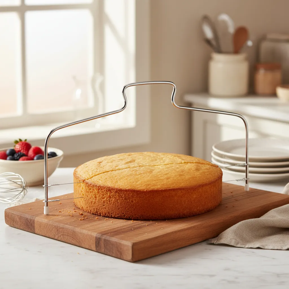 Herramienta ideal para repostería que permite cortar tortas en capas de forma rápida, precisa y uniforme. Diseñado con estructura de acero inoxidable y alambres resistentes, es perfecto para lograr acabados prolijos en tortas de múltiples pisos o con relleno 🍰✨