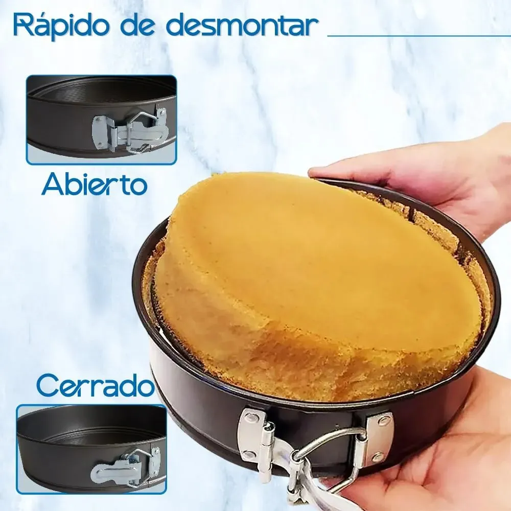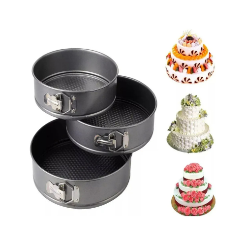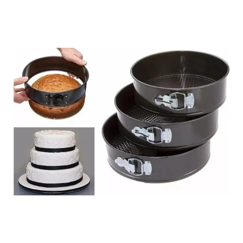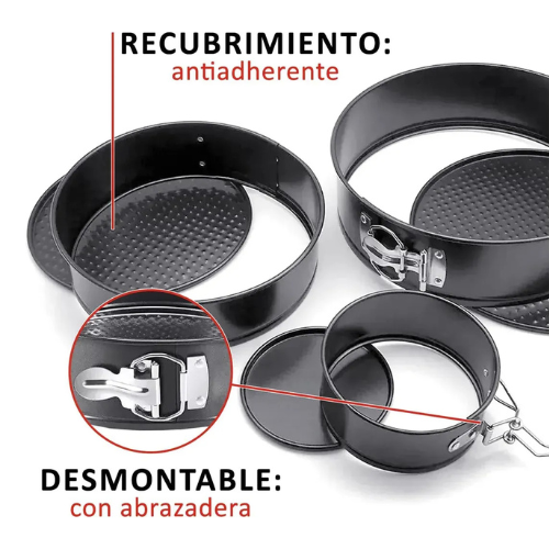 Todo lo que necesitás para preparar tortas perfectas en casa o de manera profesional. Este set incluye 3 moldes desmontables de distintos tamaños, ideales para cheesecakes, bizcochuelos, tortas de varios pisos y más.