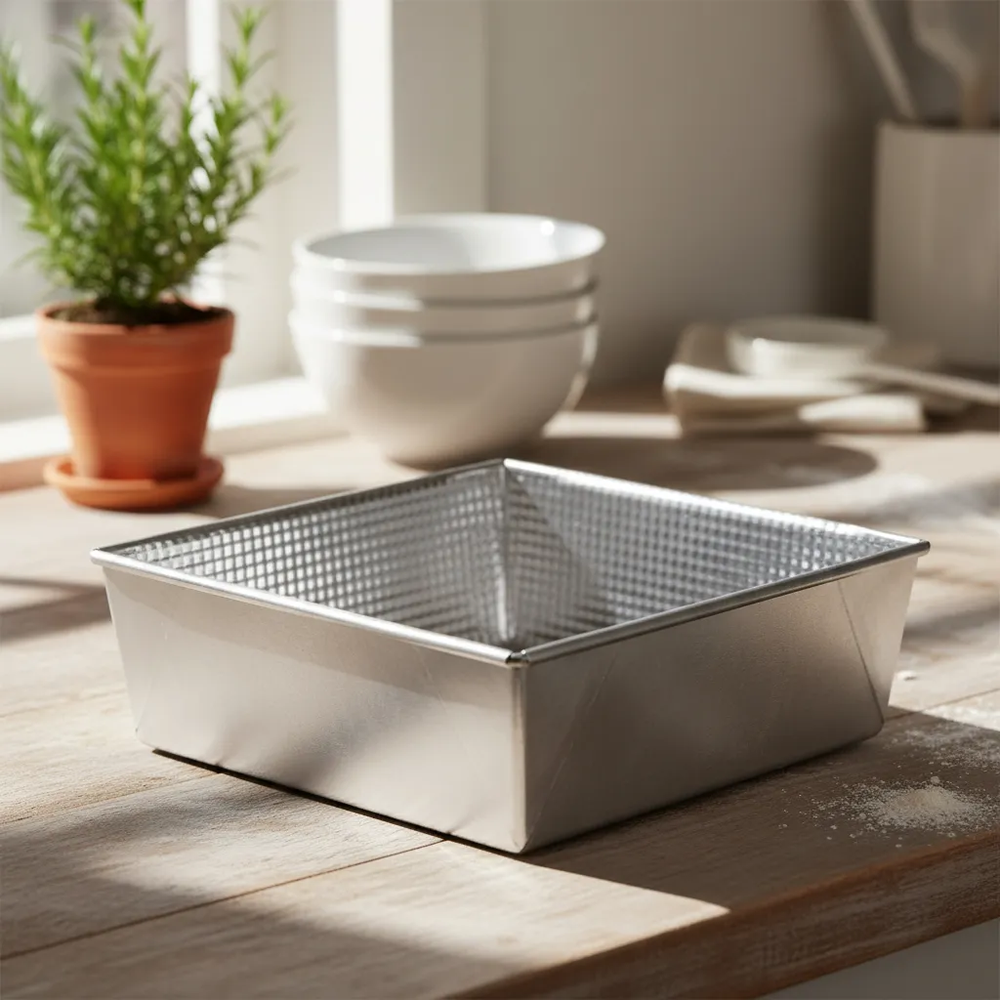 🍰 Asadera Tortera Cuadrada de Hojalata Graneada Plegada