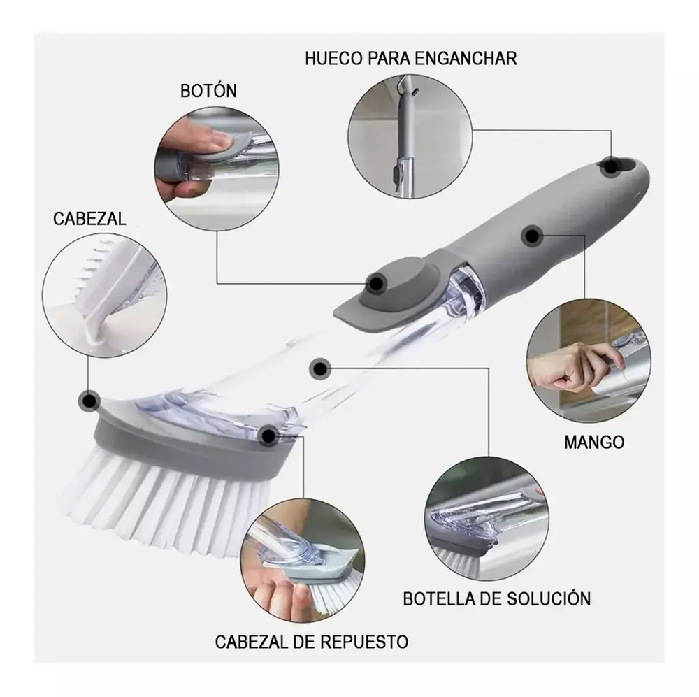 🧽 Cepillo Lavaplatos con Dispensador de Detergente y Cabezal Intercambiable