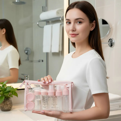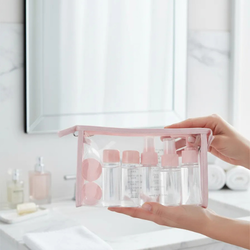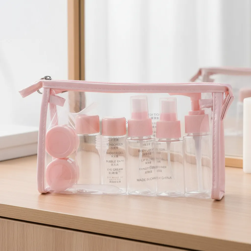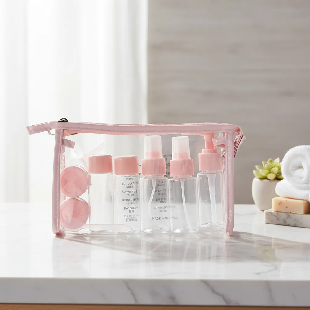 🧳 Set de Botellas para Viaje + Neceser Transparente