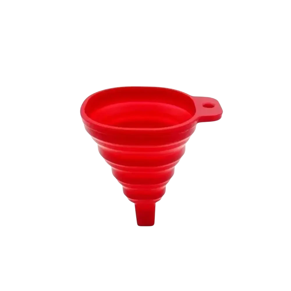Práctico, resistente y compacto. Este embudo de silicona es ideal para transferir líquidos sin derrames y se adapta fácilmente a cualquier cocina gracias a su diseño plegable.