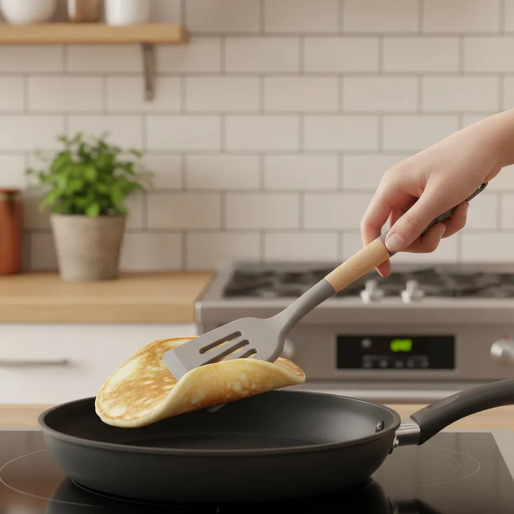 • Ideal para voltear carnes, vegetales, panqueques y más