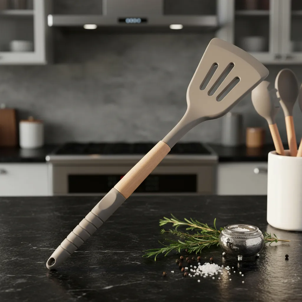 Espátula Ranurada de Silicona y Madera 🍳✨