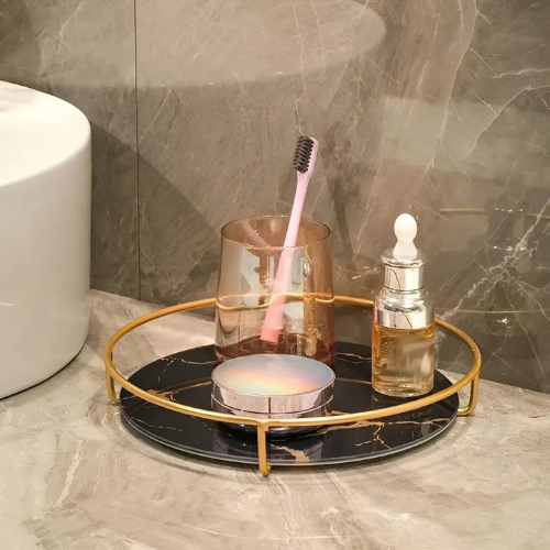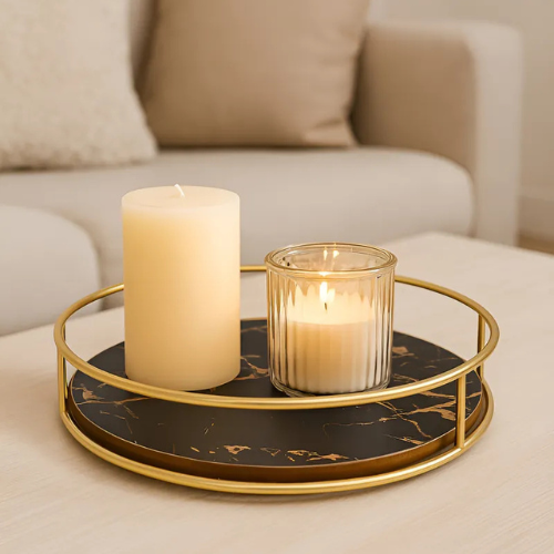 Dale un toque elegante y moderno a tu hogar con esta bandeja decorativa redonda. Ideal para organizar perfumes, velas, cosméticos, tazas o como centro de mesa.
