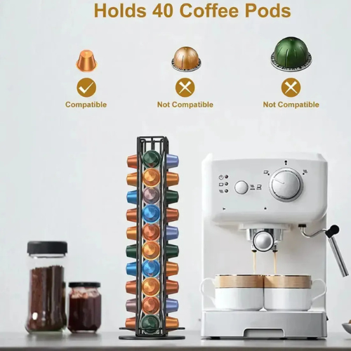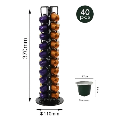 ☕🖤 Porta Cápsulas de Café Metálico Negro Giratorio – Capacidad 40 Cápsulas