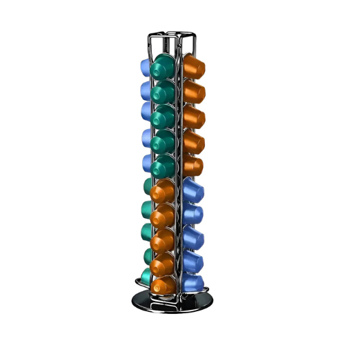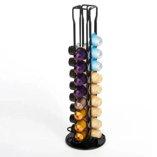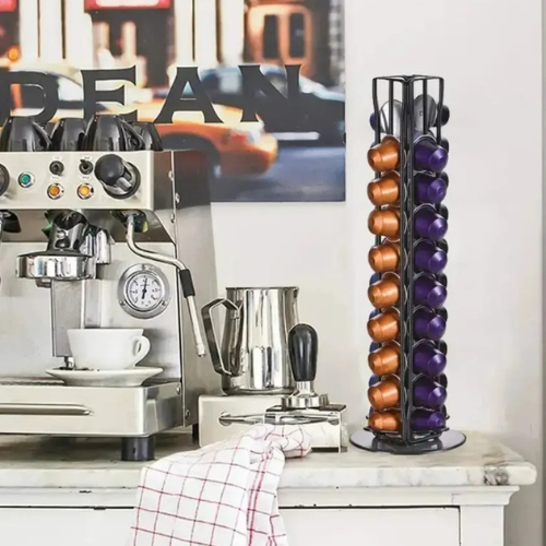 Organizá tu rincón de café con estilo y practicidad. Este porta cápsulas metálico en color negro mate es perfecto para tener tus cápsulas siempre a mano y bien ordenadas, sumando un toque moderno y elegante a tu cocina, oficina o espacio gourmet.