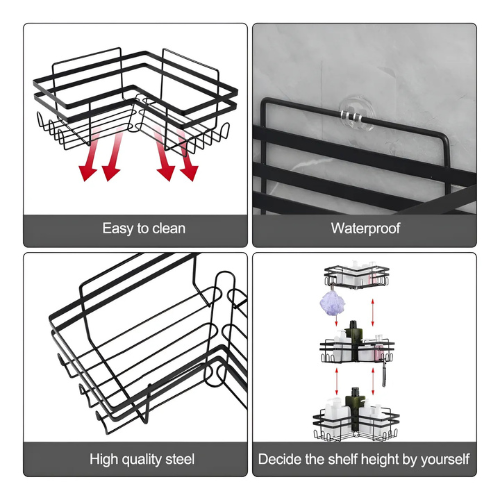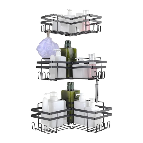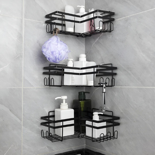 Organizá tu baño de forma práctica y moderna con este set de 3 estantes esquineros metálicos, diseñados para aprovechar al máximo el espacio sin necesidad de perforar la pared. 🧼🚿