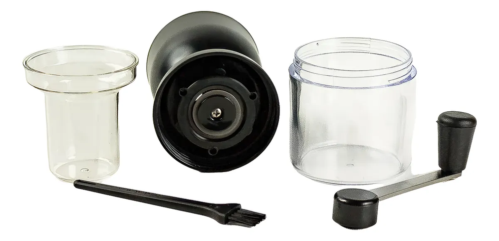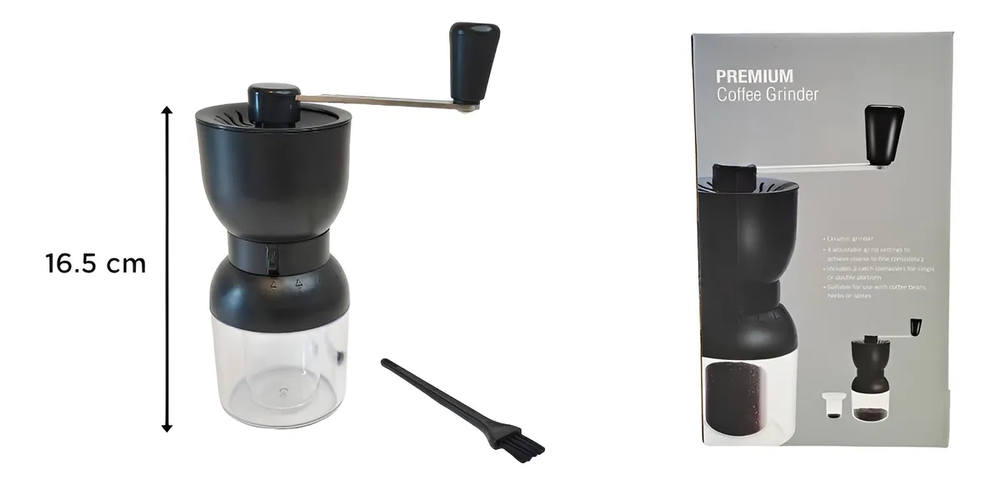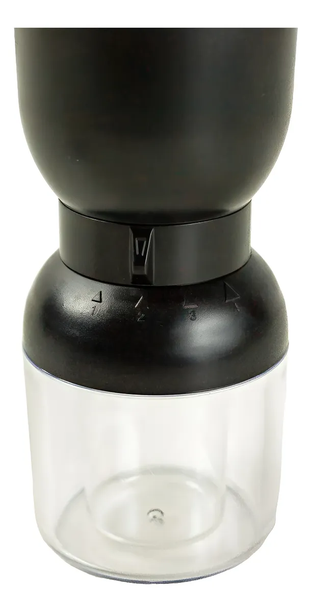 🔧 Características principales: • Regulador de molienda con 4 niveles: fino, medio, grueso y extragrueso • Cuchilla de cerámica: más duradera y precisa que las metálicas • Recipiente doble: • Compartimento chico: 25 g / 70 ml • Compartimento grande: 72 g / 220 ml • Se desmonta fácilmente para lavar • Materiales: cuerpo de plástico ABS + acrílico transparente