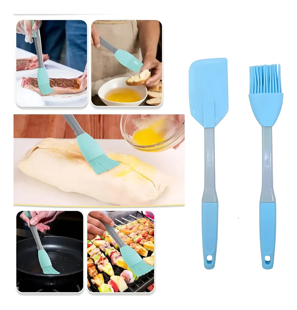 Este práctico set incluye una espátula y un pincel de silicona, perfectos para preparar, mezclar, decorar y pincelar tus recetas dulces o saladas 🍰🥧. Diseñados para brindar comodidad y facilidad de limpieza, son esenciales en cualquier cocina creativa.