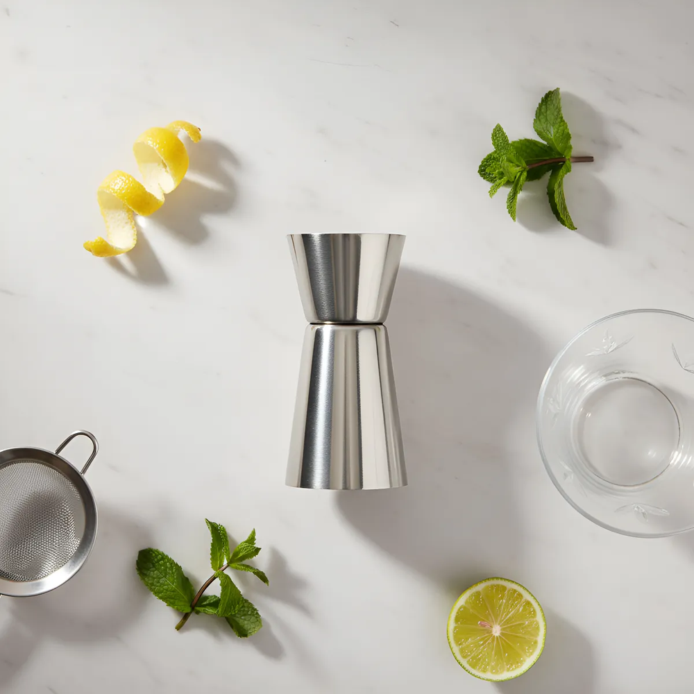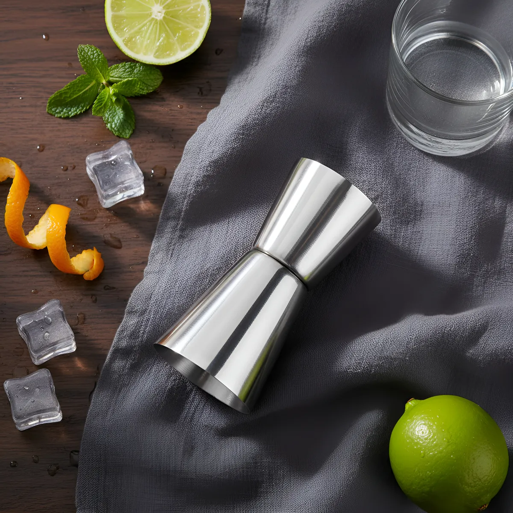 Prepará tus tragos como un verdadero bartender con este medidor doble de acero inoxidable. Con capacidad de 30 ml de un lado y 60 ml del otro, es ideal para dosificar bebidas con precisión y estilo.