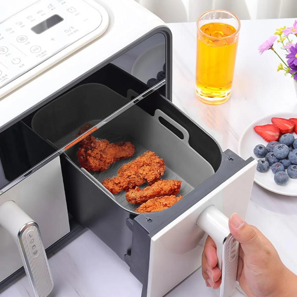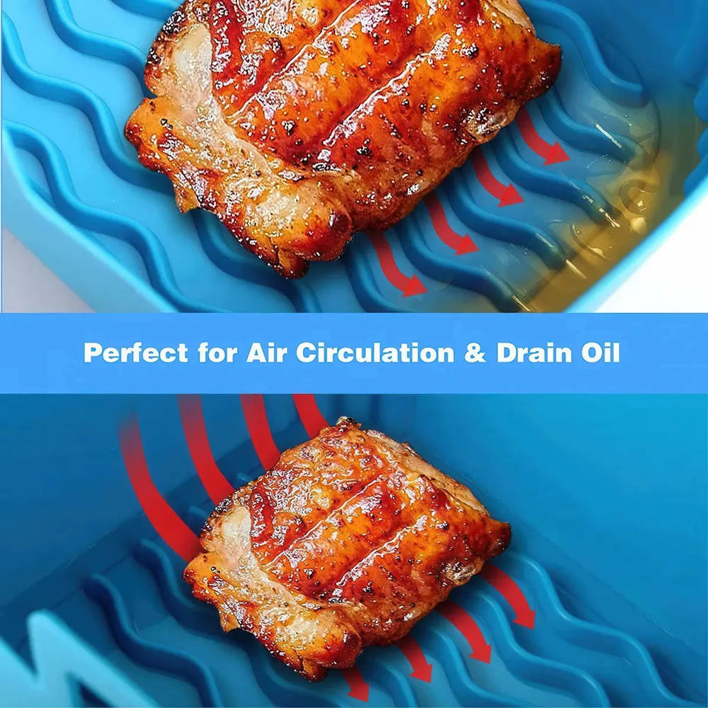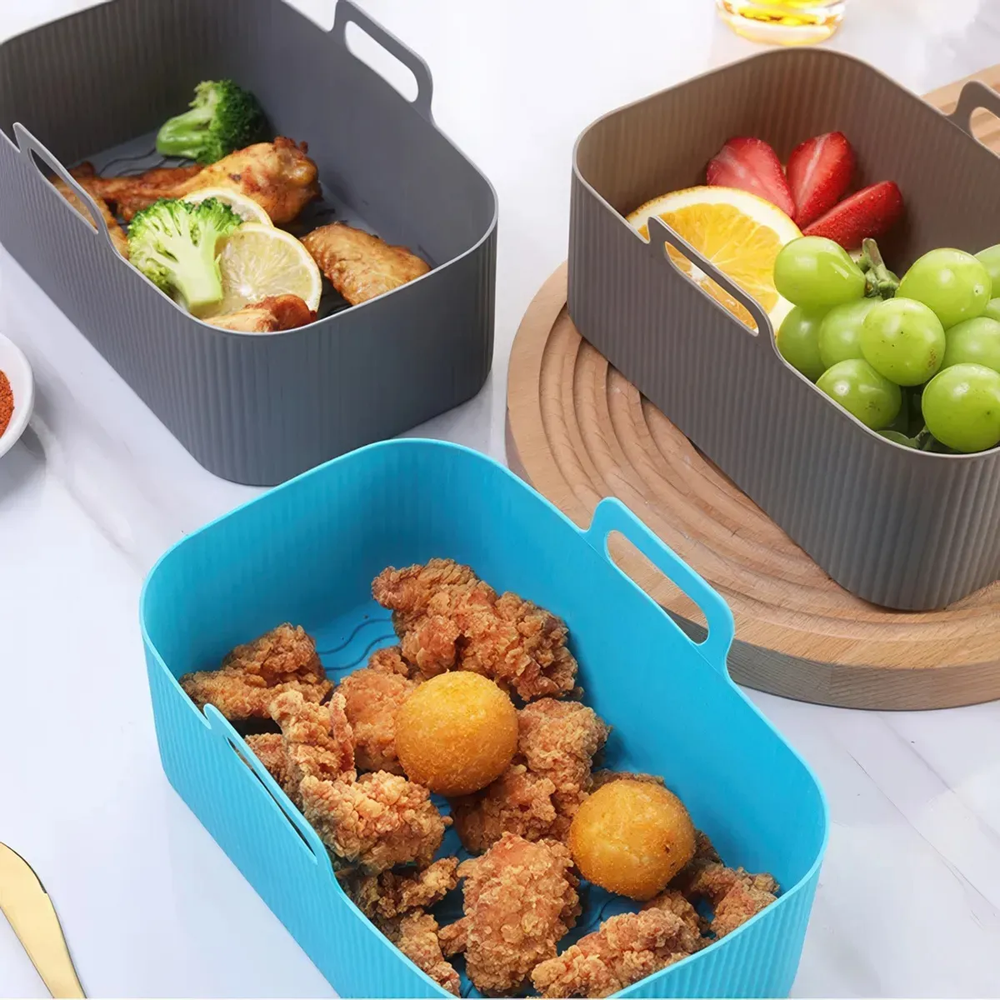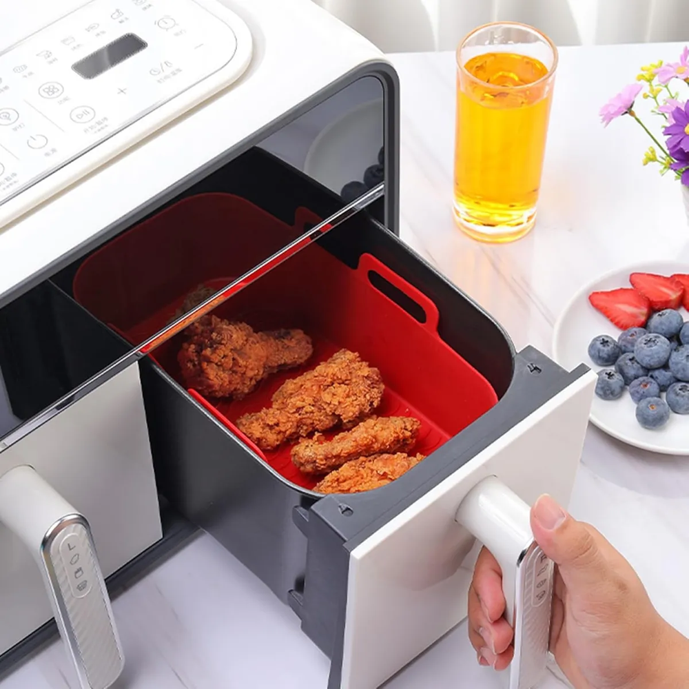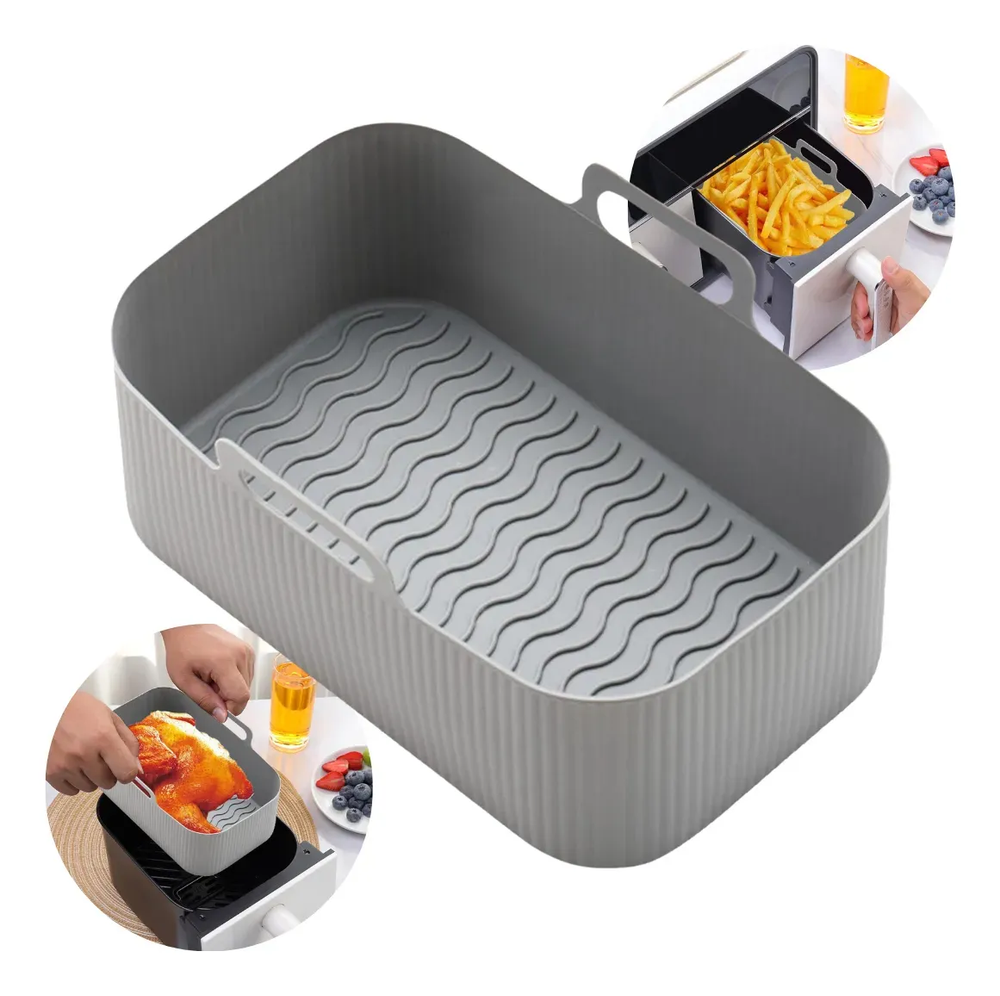 Molde de silicona ideal para cocinar en freidoras de aire de 3.5 a 5.5 litros. Su diseño rectangular y flexible permite preparar budines, tortas, recetas saladas y más, con facilidad y sin que se pegue la preparación. Perfecto para quienes disfrutan cocinar sin complicaciones.