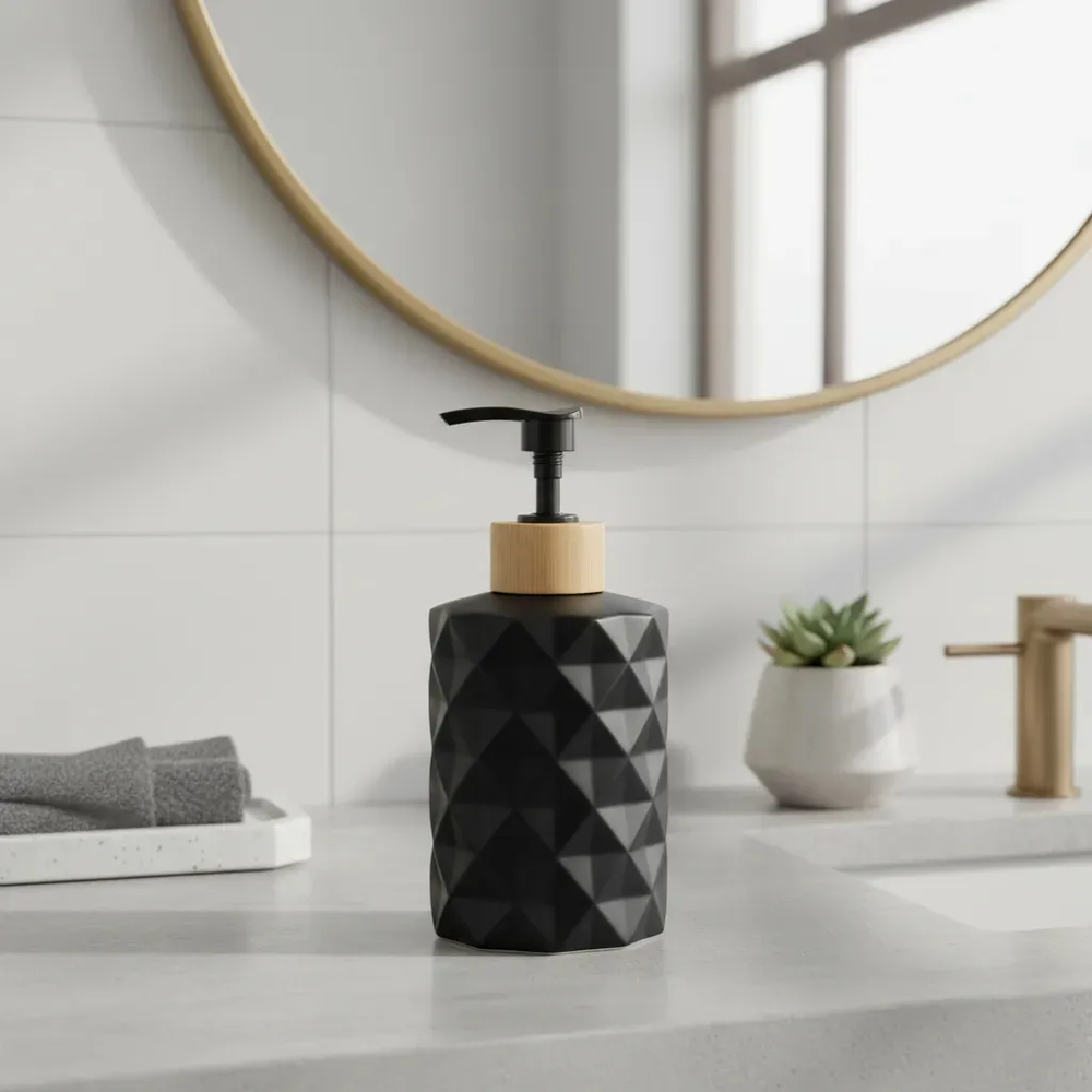 Transformá el look de tu cocina o baño con este dispenser de vidrio texturado, pensado para sumar estilo, practicidad y durabilidad a tus espacios. Su relieve tipo rombos y triángulos aporta un toque decorativo y brinda un agarre cómodo y antideslizante. Con capacidad de 350 ml, incluye una bomba dosificadora que permite aplicar la cantidad justa de jabón o detergente, evitando desperdicios. Además, cuenta con cierre de seguridad antigoteo, ideal para transportar o prevenir derrames accidentales. 🧴🔐