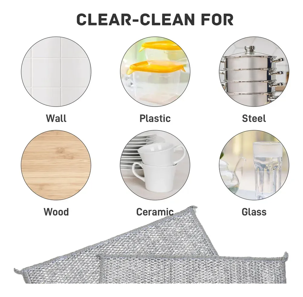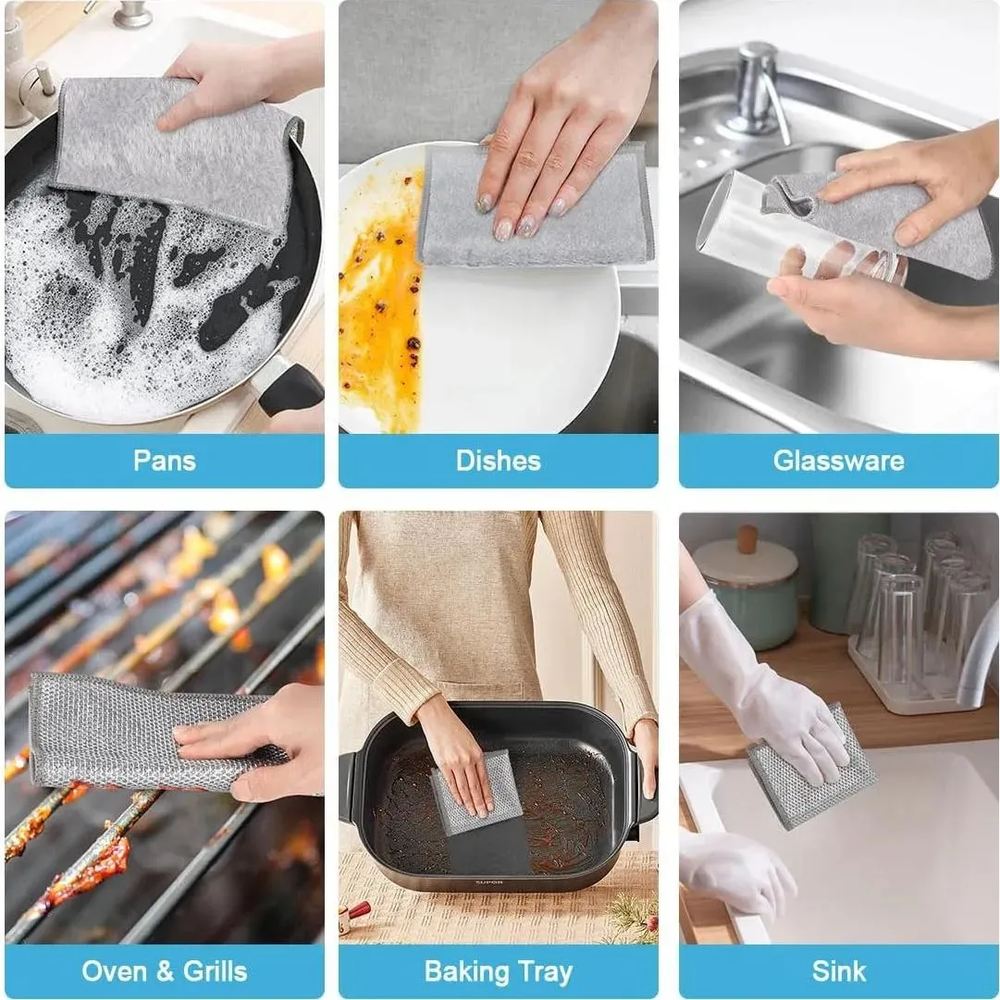 Este set incluye 2 paños metálicos de 25 × 25 cm, diseñados para brindar una limpieza profunda sin dañar las superficies. Fabricados en alambre reforzado y con textura doble cara, son ideales para remover grasa, restos adheridos y suciedad difícil en utensilios y superficies de cocina.