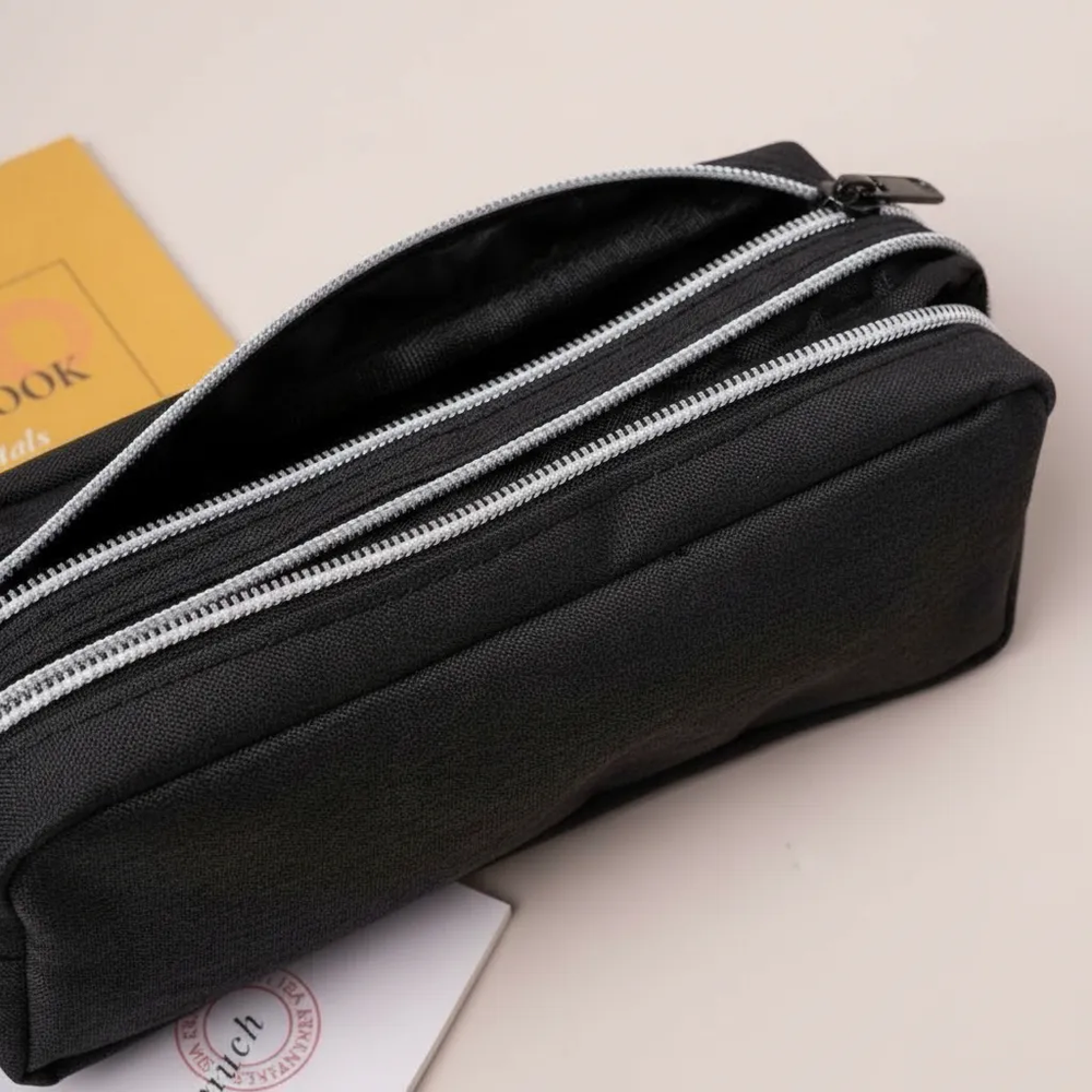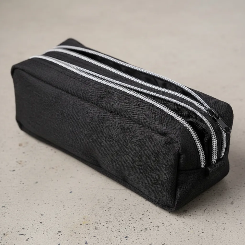 ✏️🖤 Cartuchera Negra Doble Cierre – Resistente 21 × 7,5 × 6,5 cm