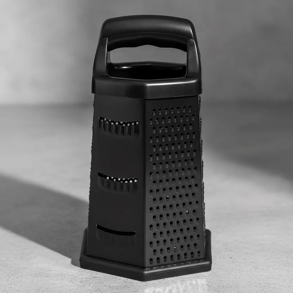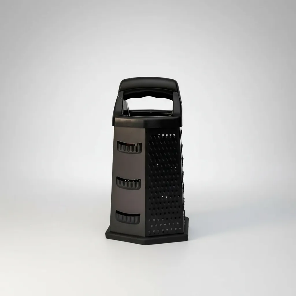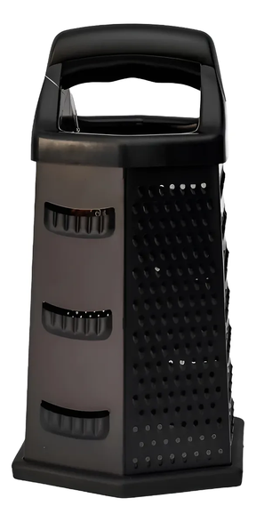 Práctico y versátil, este rallador hexagonal de 6 caras te permite rallar quesos, verduras, frutas, pan duro y mucho más con un solo utensilio. Su diseño multifunción optimiza el espacio y ofrece diferentes tipos de rallado según lo que necesites preparar.