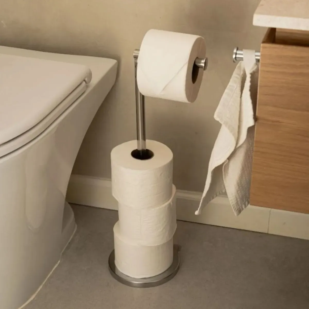 🧻✨ Porta Rollo de Pie para Papel Higiénico – Con Espacio para Repuestos