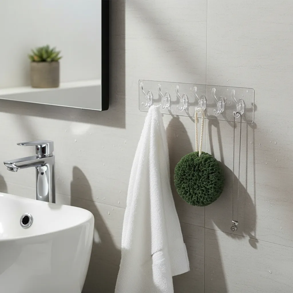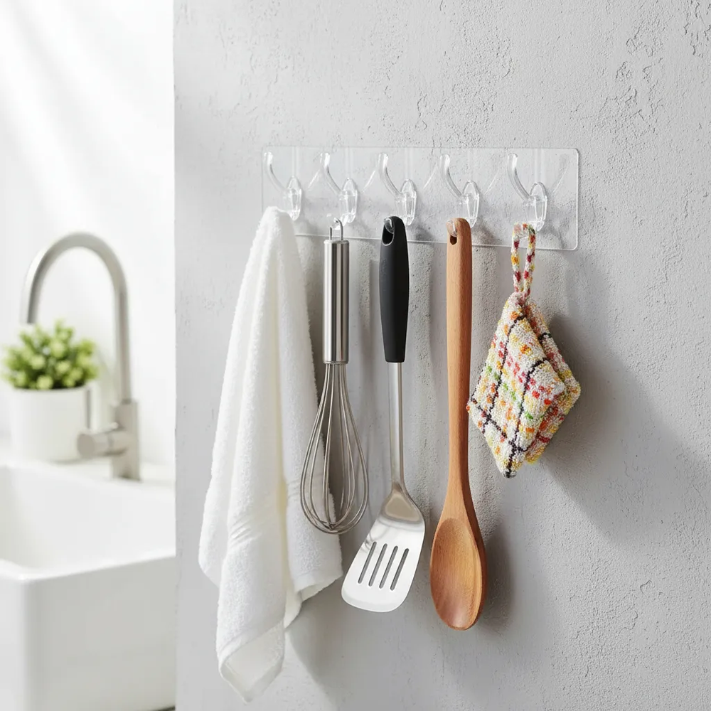 🪝✨ Organizador Barral Adhesivo con 6 Ganchos – Cocina y Baño