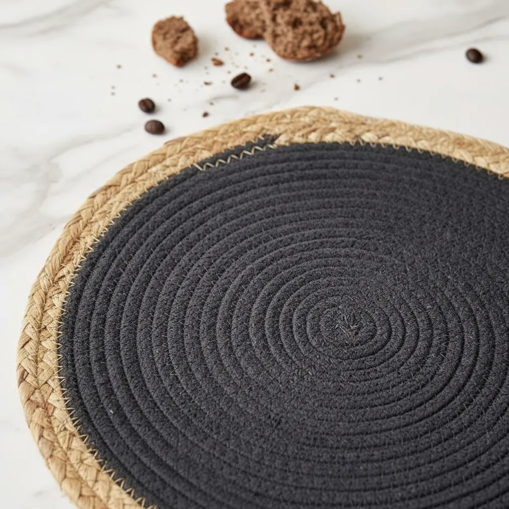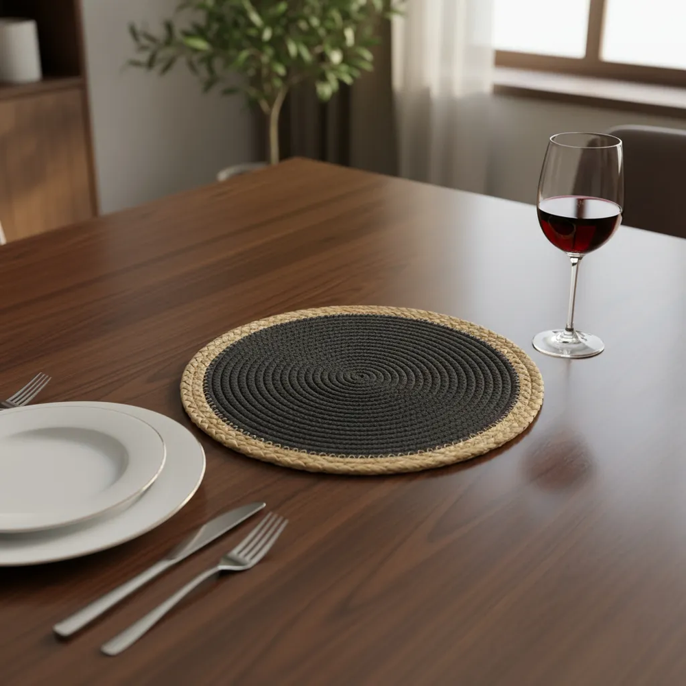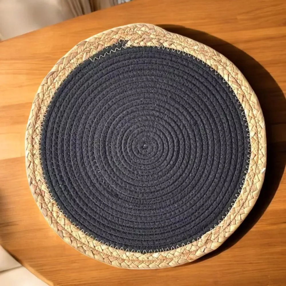 Dale un toque cálido, natural y decorativo a tu mesa con este individual redondo confeccionado en algodón y yute trenzado. Su diseño mezcla lo rústico con lo moderno, ideal para proteger superficies mientras realzás la estética de tu comedor o cocina.