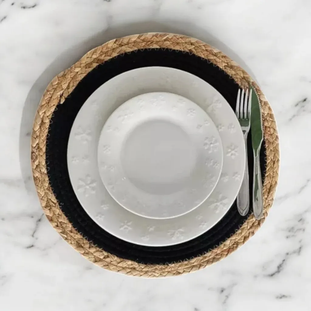 🌿✨ Individual Redondo Trenzado de Algodón y Yute – 38 cm