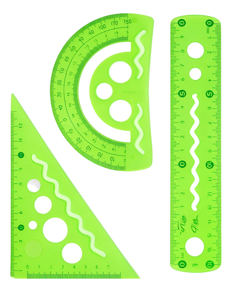 📏 Set escolar práctico y liviano, ideal para clases de matemática, dibujo técnico o tareas cotidianas. Incluye los elementos básicos que necesitás para realizar trazos precisos y mediciones claras.