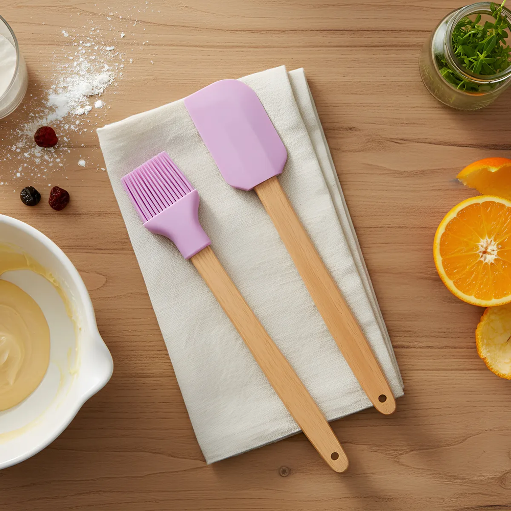 Un dúo esencial y práctico para tus preparaciones dulces o saladas. Este set incluye 1 pincel y 1 espátula con puntas de silicona flexibles y resistentes, ideales para aplicar glaseados, untar salsas, mezclar ingredientes o raspar recipientes sin rayar tus utensilios.
