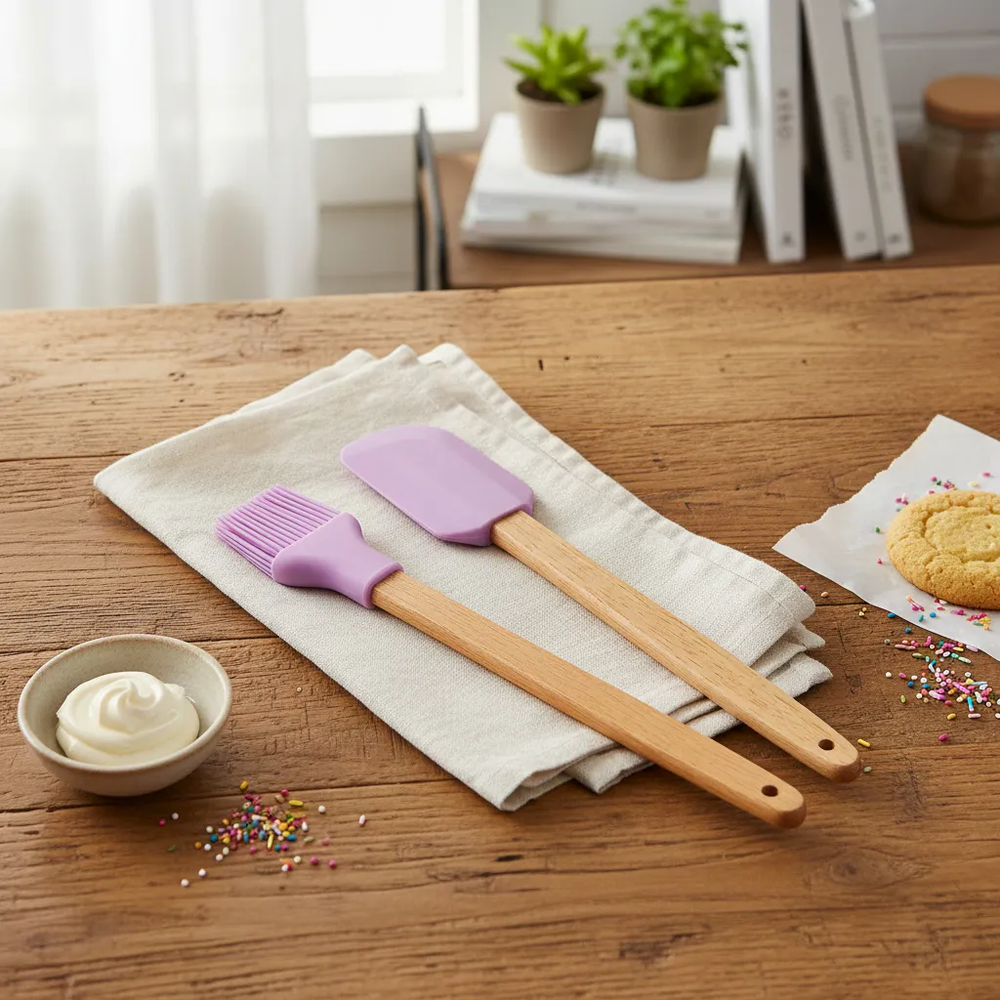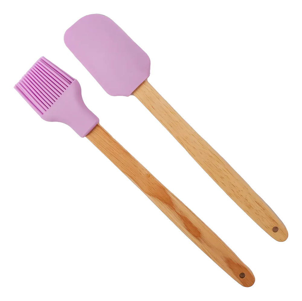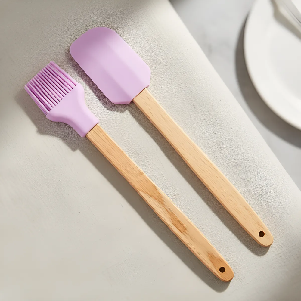 🧁🍳 Set de Pincel y Espátula de Silicona con Mango de Madera – Especial Repostería