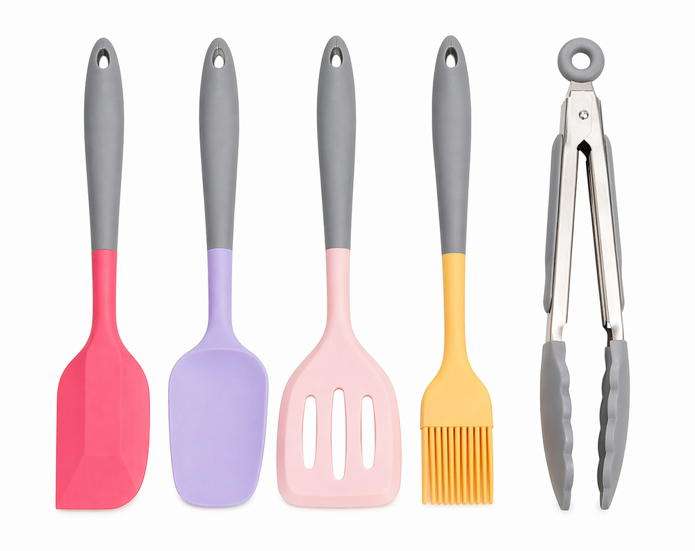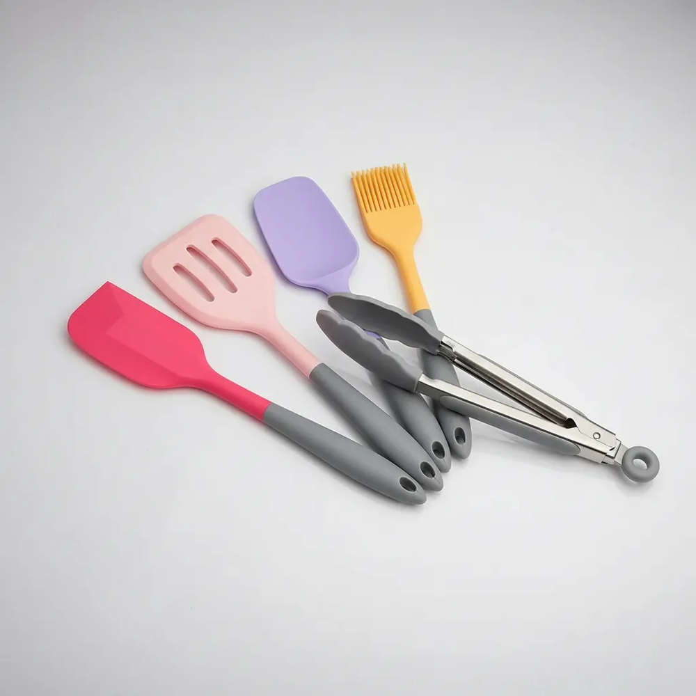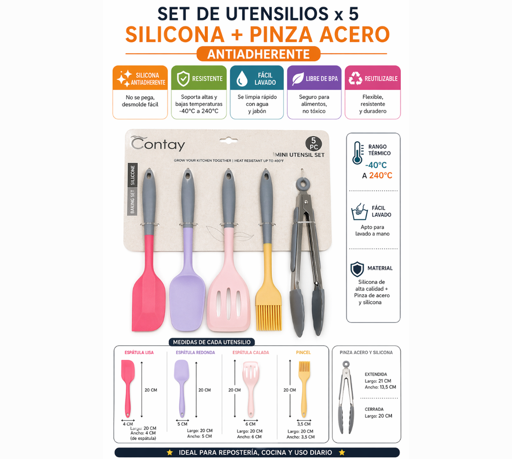 SET UTENSILIOS DE COCINA X5 SILICONA (INCLUYE PINZA)