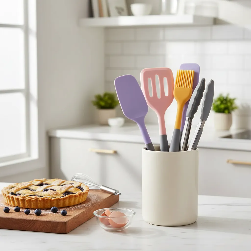 🍳 Equipá tu cocina con este set completo de utensilios, ideal para cocinar, hornear y manipular alimentos sin dañar superficies. Diseñado para brindar practicidad, resistencia y comodidad en el uso diario.